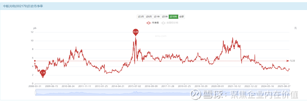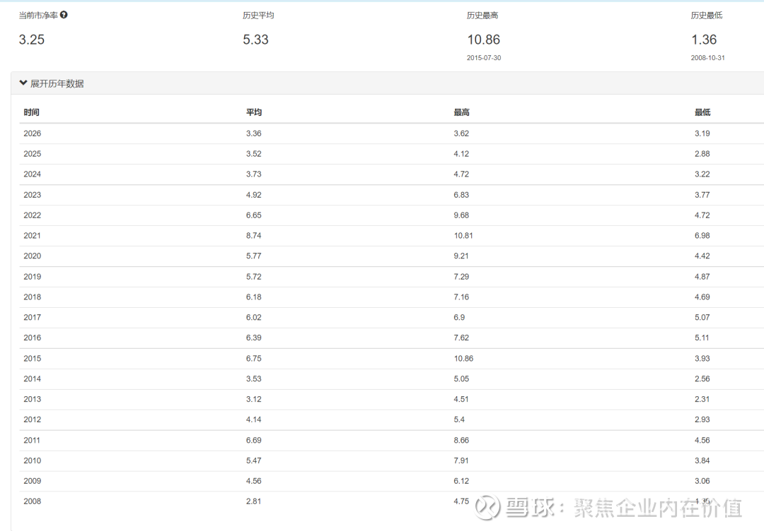 历史平均是5.33倍,当前是3.25倍。