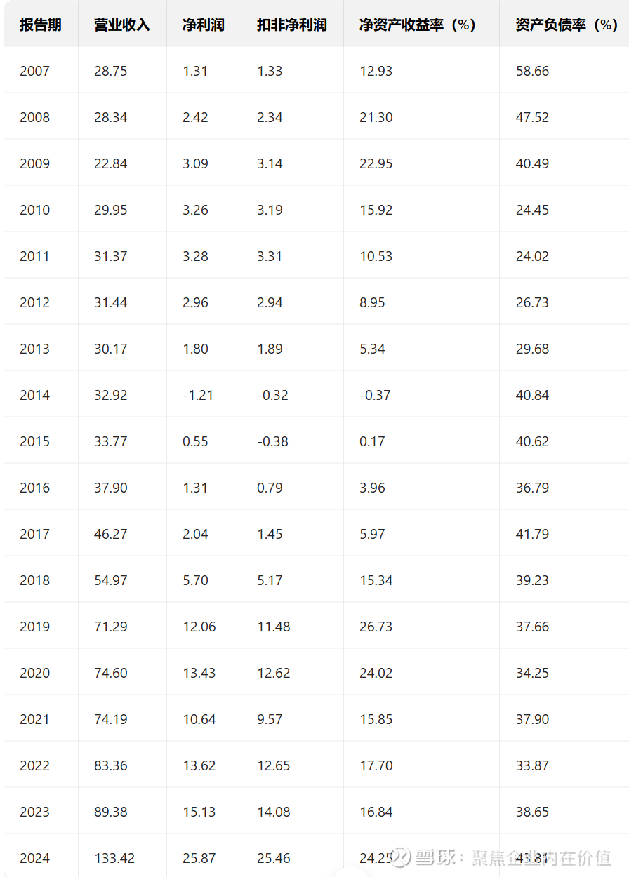 2024年的爆发式增长: 2024年是公司历史性的转折点。营业收入达到 133.42亿元(同比+49.26%),净利润达 25.87亿元(同比+71.05%)。这一增速远超过去十年的平均水平。