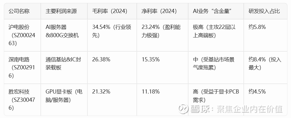 正好看一下沪电股份与同行业两大龙头——深南电路(侧重IC载板与通信)和胜宏科技(侧重AI服务器显卡板)的深度对比