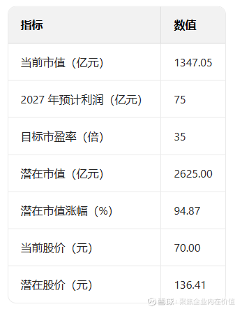 2027年,75亿利润,35倍市盈率,则