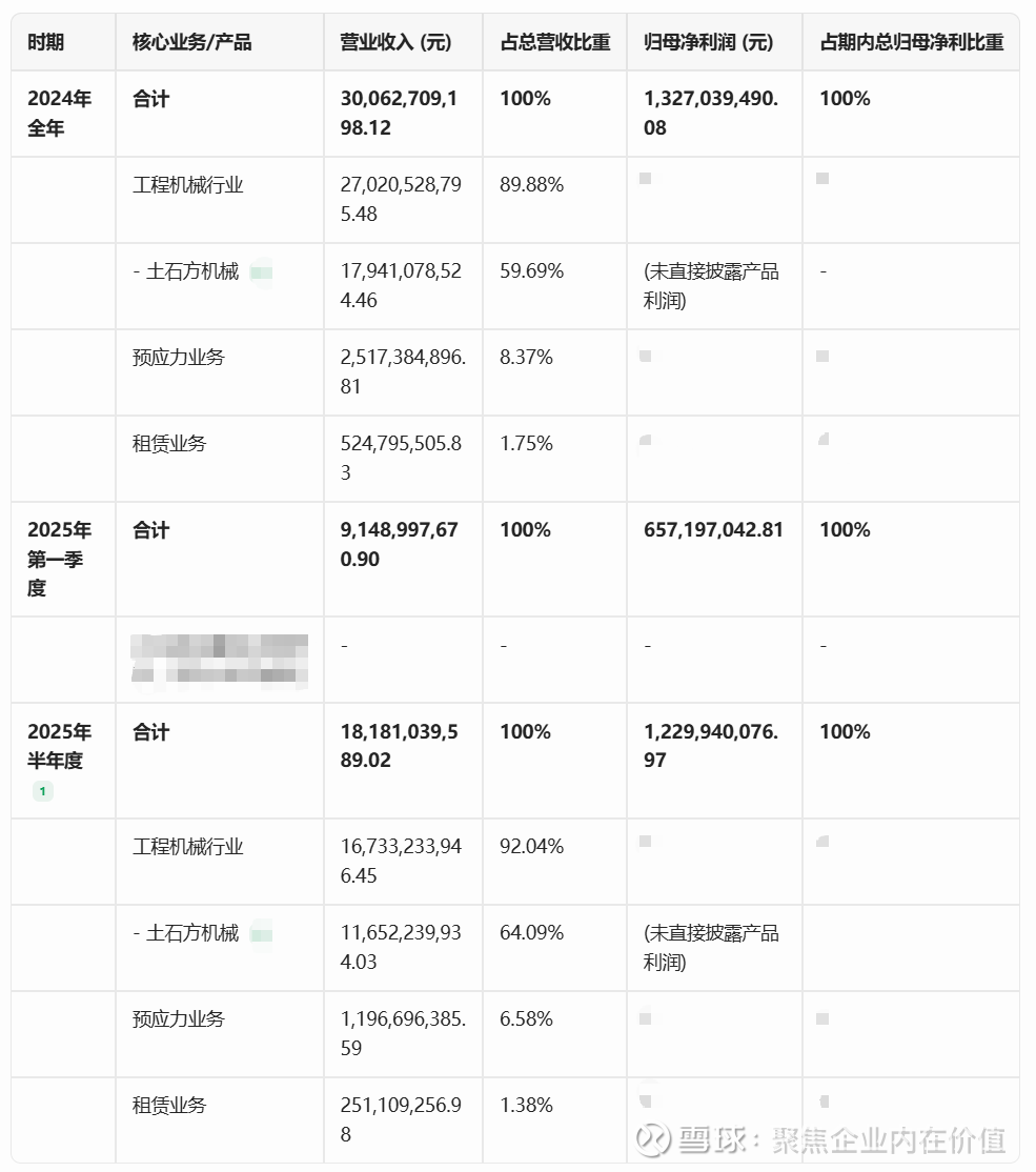 土石方铲运机械(核心支柱): 贡献收入约 179.4亿元,占比高达 59.7%。