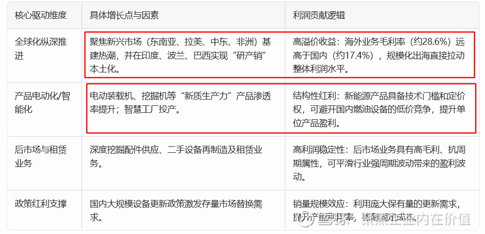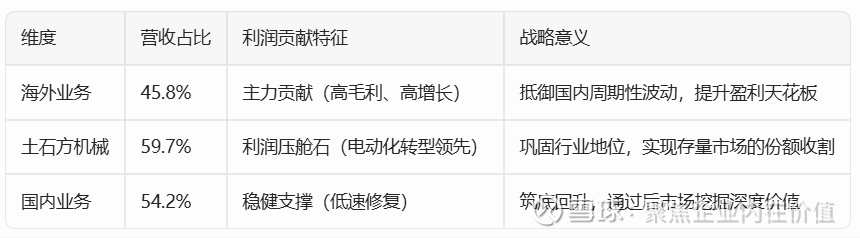 贡献逻辑: 同样的机器,在海外卖出的价格和利润率远高于国内。因此,海外资产是目前柳工利润增长的最核心源泉。