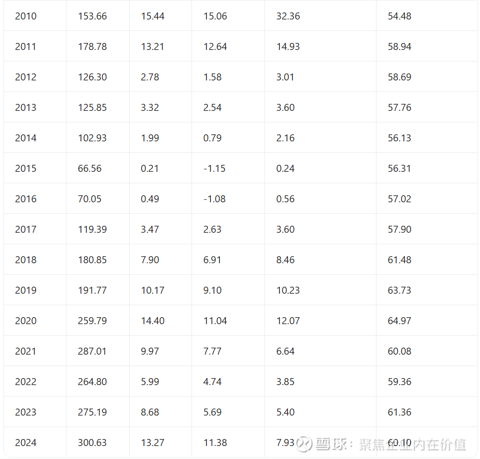 净资产收益率(ROE): 2024年为7.93%,虽然较2010年巅峰期(32.36%)有差距,但呈现明显的逐年回升态势(2022年仅为3.85%)。