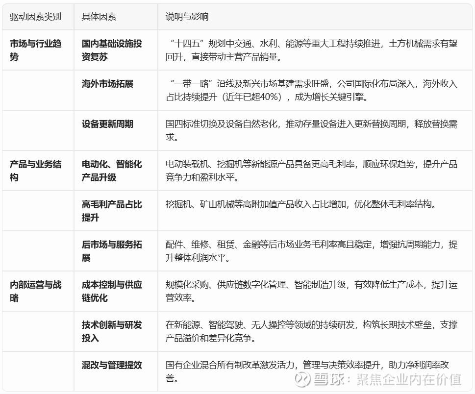 柳工未来核心净利润增长驱动因素表