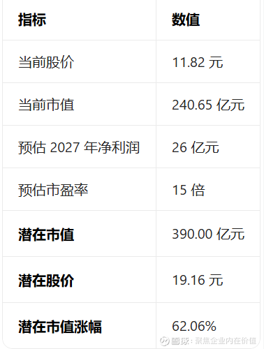2027年股价预期在19-20元,潜在涨幅是62.06%,这个我觉得是合理的。