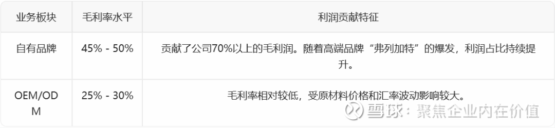 利润引擎:自有品牌贡献了约 60% 的营收,但由于其毛利率显著高于代工业务,品牌资产对净利润的实际贡献率估计超过 70%。