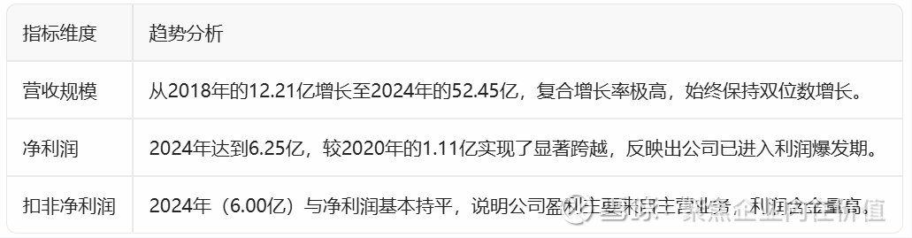 风险关注点:虽然增速依然强劲,但2024年营收增速(21.22%)相比前几年(30%~40%以上)略有放缓,需关注行业竞争加剧或市场饱和度带来的挑战。