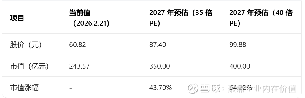 那么直接来看2027年的净利润预估:10亿元,按照这个阶段的情况,我愿意给到35倍和40倍市盈率,则: