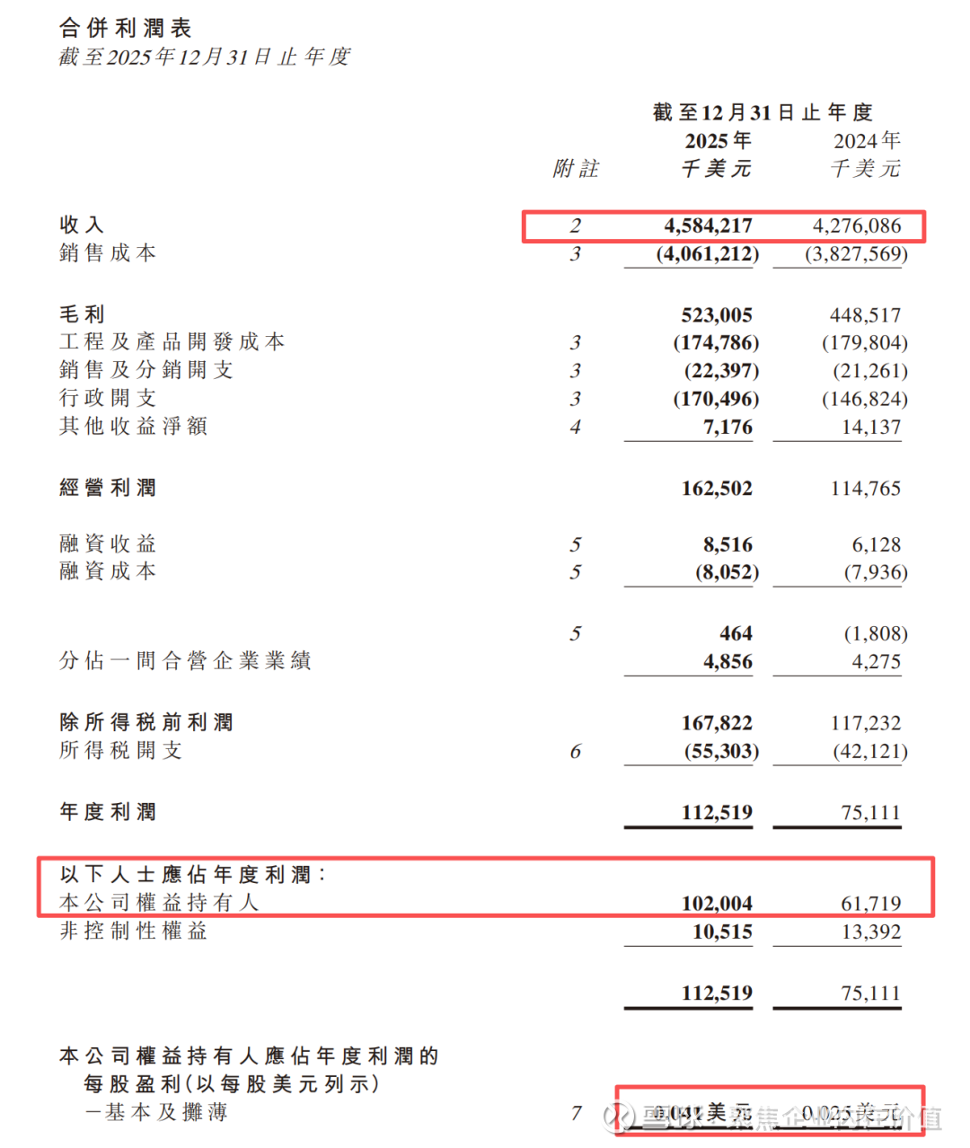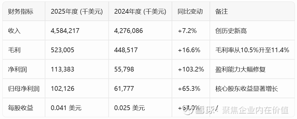 利润大增:年度利润达到 1.13亿美元,同比大幅增长 49.8% ;归属于母公司权益持有人的净利润为 1.02亿美元,同比增长约 65.3% 。