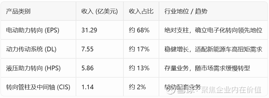 电动助力转向 (EPS):收入占比接近 70%(31.29亿美元),较去年增长约8.4%,持续受益于汽车电气化和智能化趋势 。