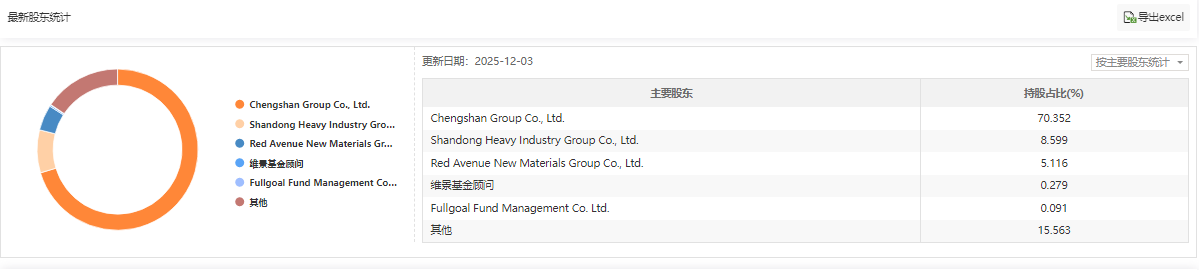 成山集团70.3%,中国重汽8.6%,彤程新材5%财务投资,外部股票占15%。