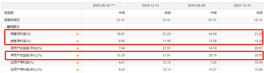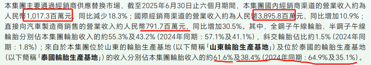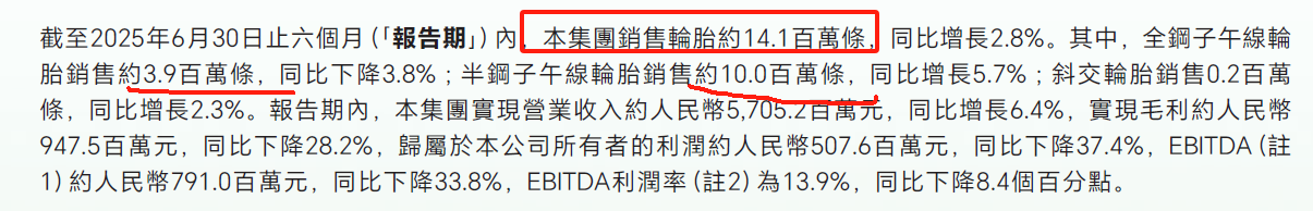 2025年年中毛利下降,营业成本上升,主要是橡胶等原材料成本上升。