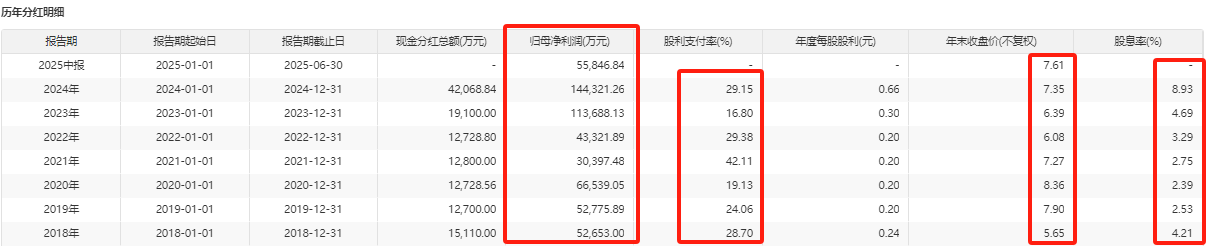 公司有保持分红的良好习惯,股利支付率有波动,2024年达到8.9%的股息率。
