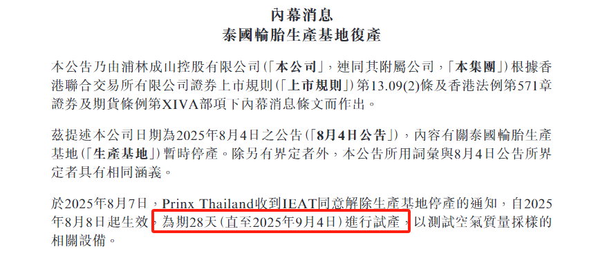 泰国工厂在经历停工-28天试产复工-停工-正式复工的过程,但28天观察期间,公司股票波动有限。