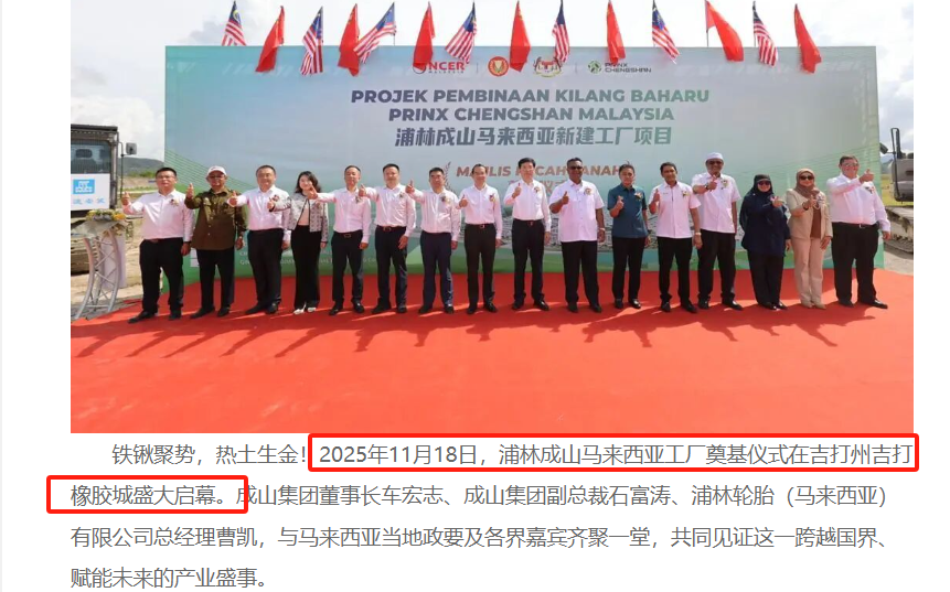 根据公司官网,25年11月18日,马来西亚工厂在吉打橡胶城正式开工建设。