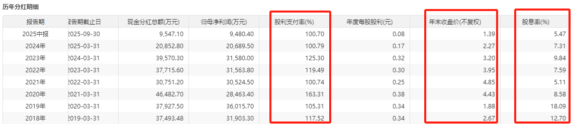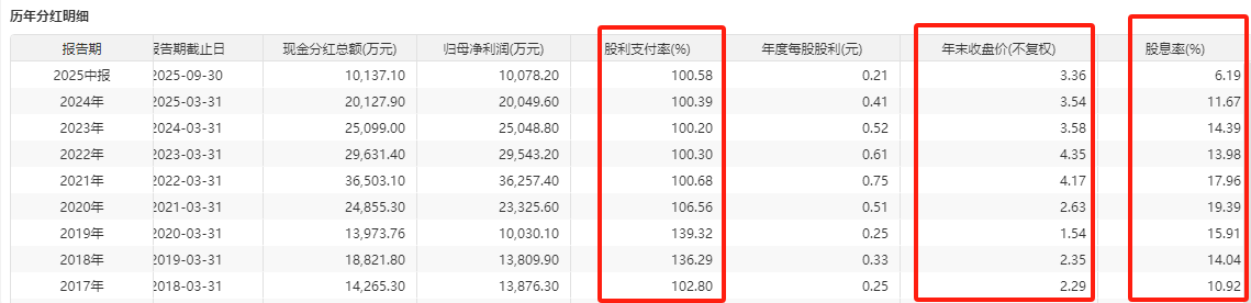 本来有望在2024年变成吃息股,2025年半年报只分了60%,当天股价下跌6个点。
