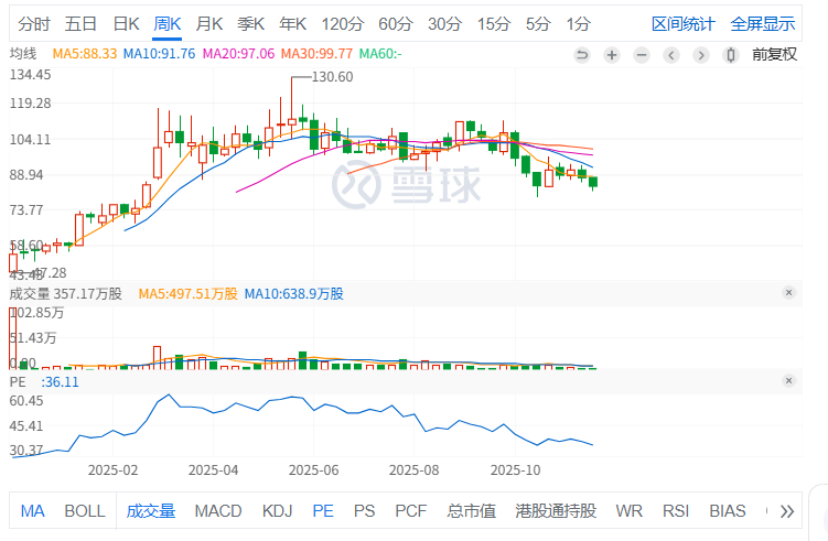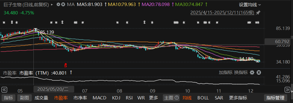 巨子生物受市场对其增长下降的预期,PE近期从40倍下降至15倍左右。