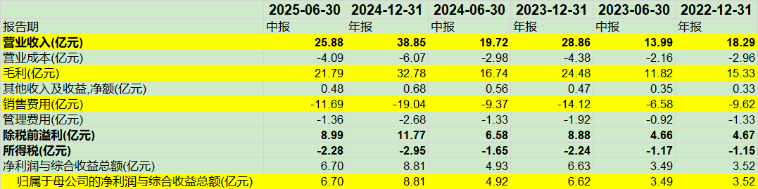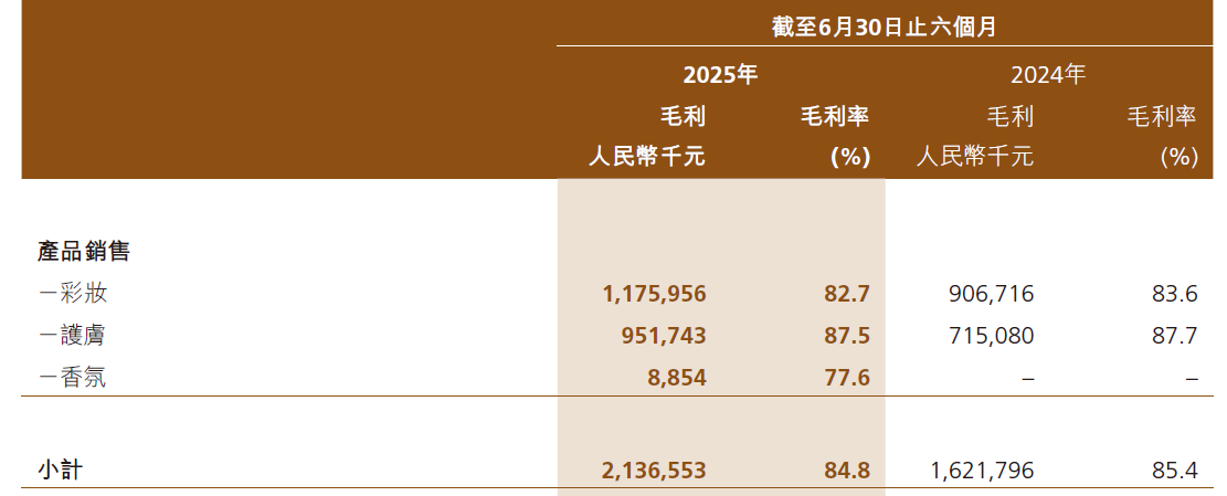 25年半年报,整体销售26亿元,其中彩妆销售14亿,护肤销售11亿。