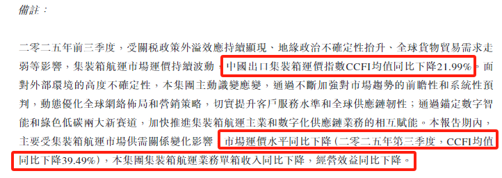 中远海控前三季度营收下降20%,公司给出了解释CCFI下降22%;
