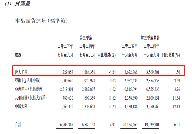 从报告中可以看出,前三季度来看跨太平洋和亚欧线路单价下降明显,尤其是第三季度。