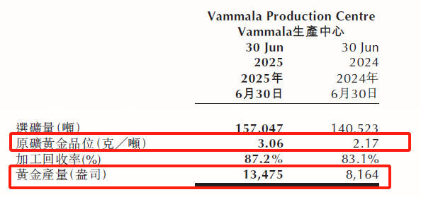 2023年总产量20159盎司、2024年总产量20517盎司、2025年上半年产量13475盎司(24年上半年为8164盎司)。