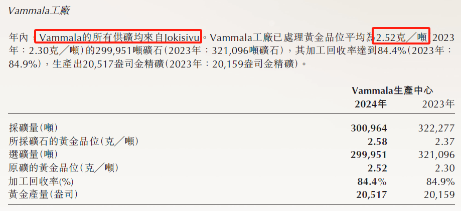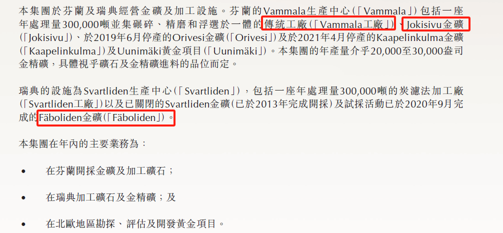 当前核心资产是芬兰Joki金矿的开采和Vamm工厂的提炼加工。