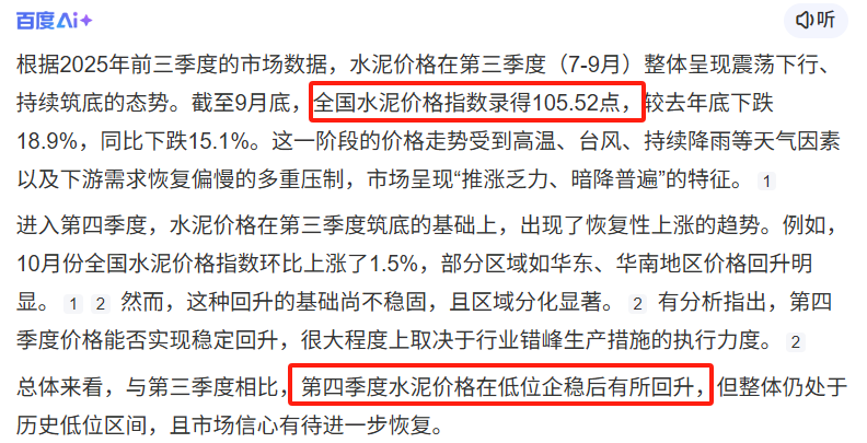而相对应的水泥价格相较于前期没有出现明显下降,因此公司应该是计提了其他亏损,非业务性的导致了第四季度亏损,全年利润整体下滑。