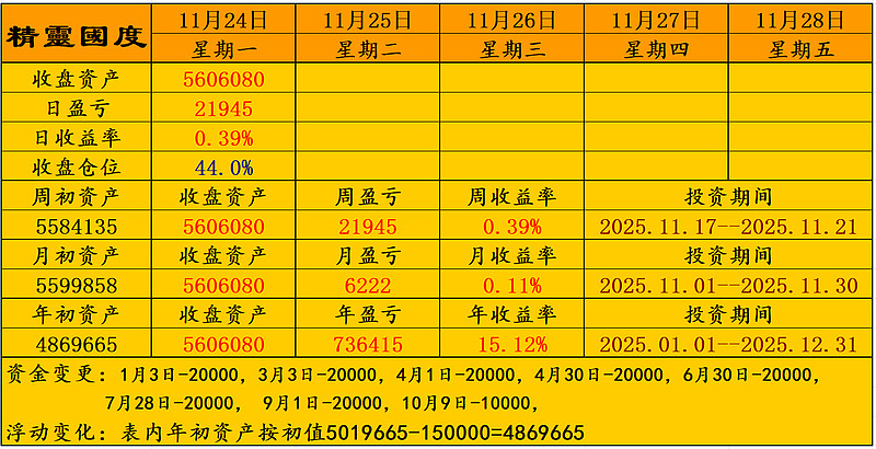 持仓68只。收盘仓位44.0%。净资产本轮高点回撤-2.73%。