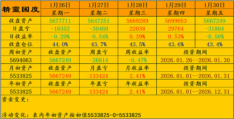 持仓65只。收盘仓位43.4%。净资产本轮高点回撤-1.15%。