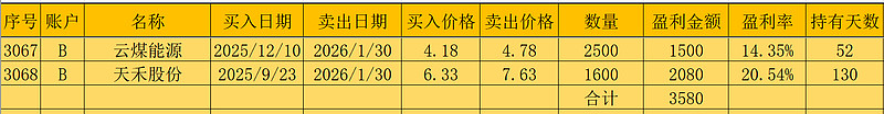买入奥佳华、奥特迅、上海家化各一份。卖出云煤、天禾各一份。今日网格落袋收益3580元;今年累计落袋43730元。