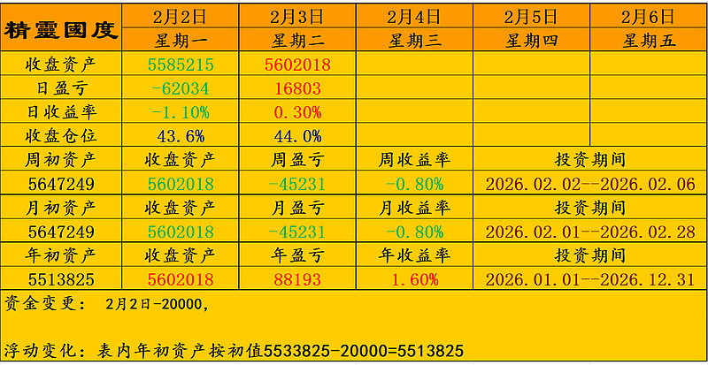 再次建仓北大荒,持仓品种增至66只。收盘仓位44.0%。净资产本轮高点回撤-1.95%。
