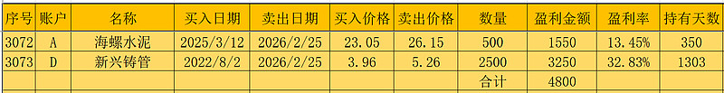 无买入。卖出海螺水泥、新兴铸管各一份,今日网格落袋收益4800元;今年累计落袋54670元。