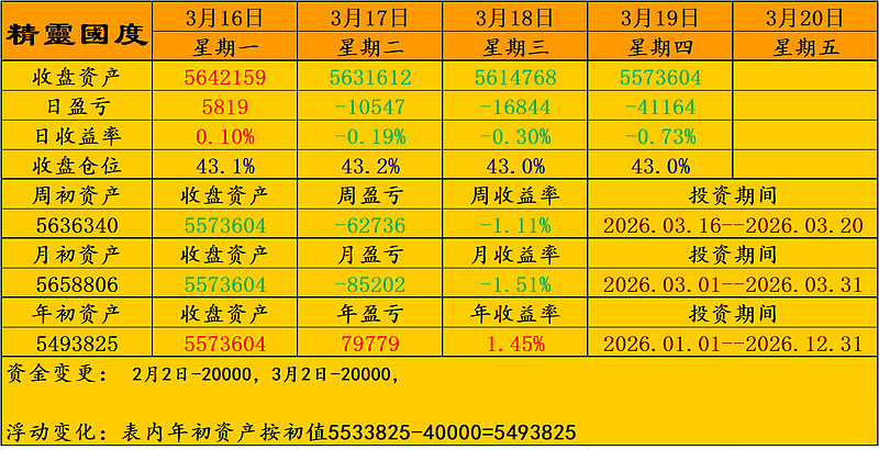 持仓62只。收盘仓位43.0%。净资产本轮高点回撤-2.10%。