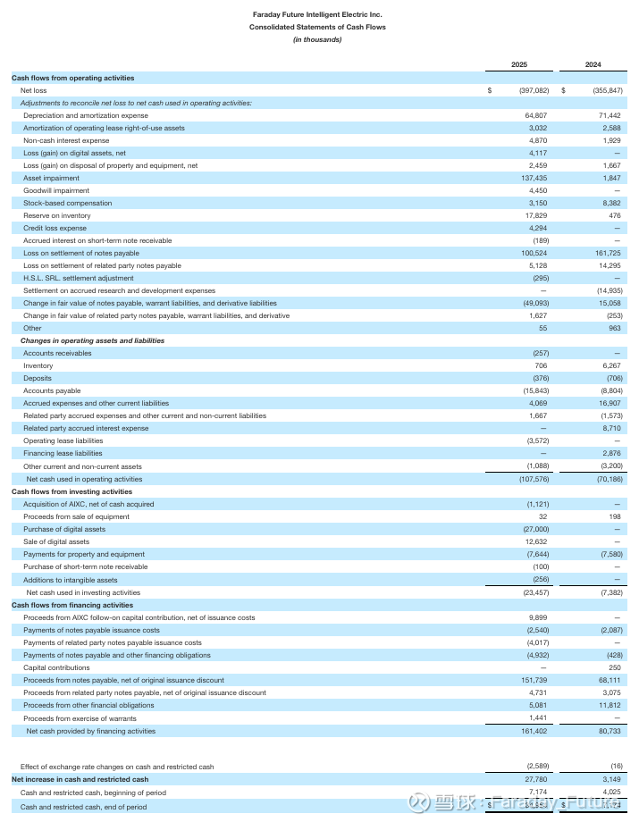 2025年计提的一次性资产减值,源于公司战略重心从FF 91项目转向计划中的FF 92升级项目,以及为FX Super One的商业化生产所进行的重组和设备改造。相关减值资产有机会在有限追加投入的情况下,通过改造升级实现再利用。