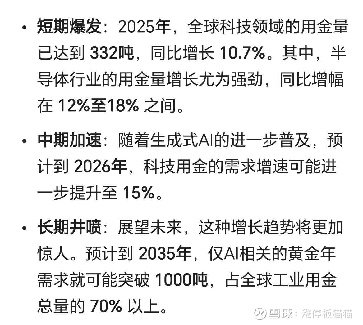 每年AI硬件的投入增加1000吨的黄金工业消费缺口,黄金是AI的血液,AI算力和消费电子都消耗大量黄金