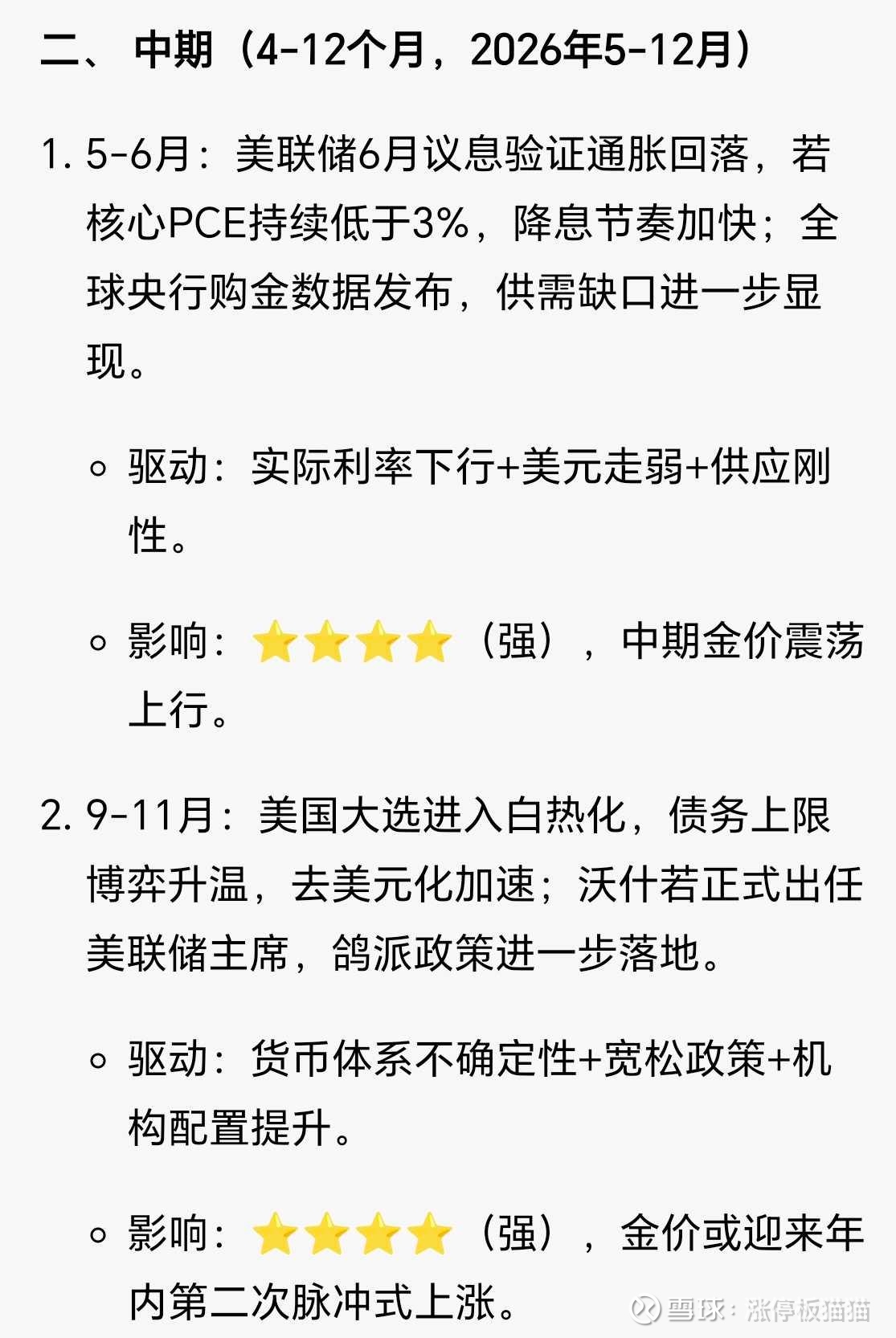 目前虽然有通胀,但名义利率并没有完全归零。只有当全球主要央行被迫将利率降到负值(或者实际利率深陷负区间),导致法币现金变成“废纸”的共识形成时,金价才会迎来最后的“疯狂补涨”。