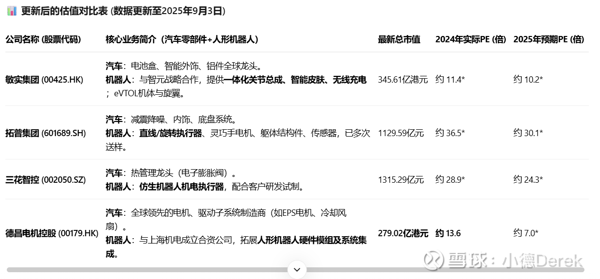 跟同行业比,直接让deepseek输出,可以看出,港股两家公司PE在10-15倍,A股的拓普和三花在30倍上下。