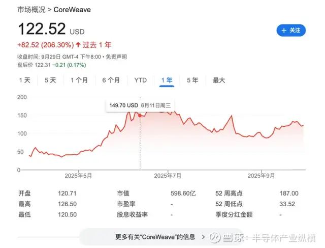 2025年最引人注目的科技股之一,一定是今年上市的CoreWeave。2025年由英伟达支持的CoreWeave上市,自IPO以来,其股价已上涨两倍多,最高涨幅接近4倍。