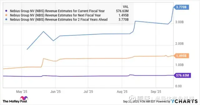 Nebius 的股价在 2025 年迄今已上涨 309%,2025 年上半年的收入为 1.56 亿美元,上半年的收入同比增长545%。分析师预计,Nebius 年底的收入将增长390%,达到 5.76 亿美元。