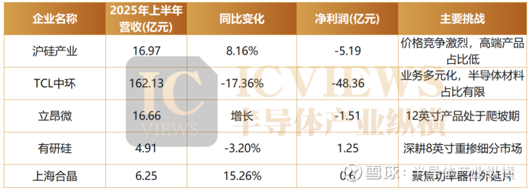 国内主要硅片企业2025年上半年业绩对比表展示了这一现象: