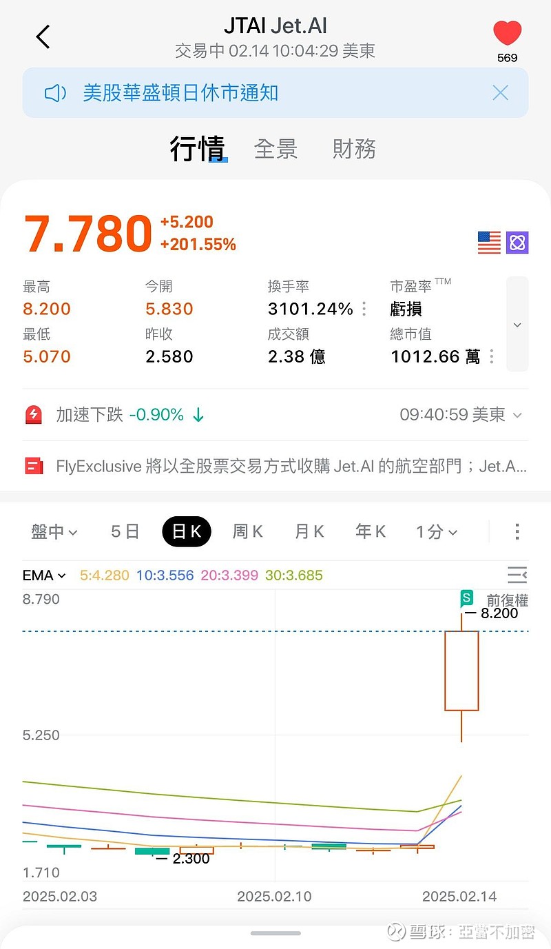 $Jet.AI(JTAI)$ Jet.AI 將專注於人工智能產品,並剝離其航空業務。Jet.AI 的股東將獲得 FlyExclusive 的 A 類普通股。購買價格基於 Jet.AI 的淨現金,並附加 115%-120% 的溢價,如果沒有這次交易估計我也是難脫離苦海。感謝#人工智能#