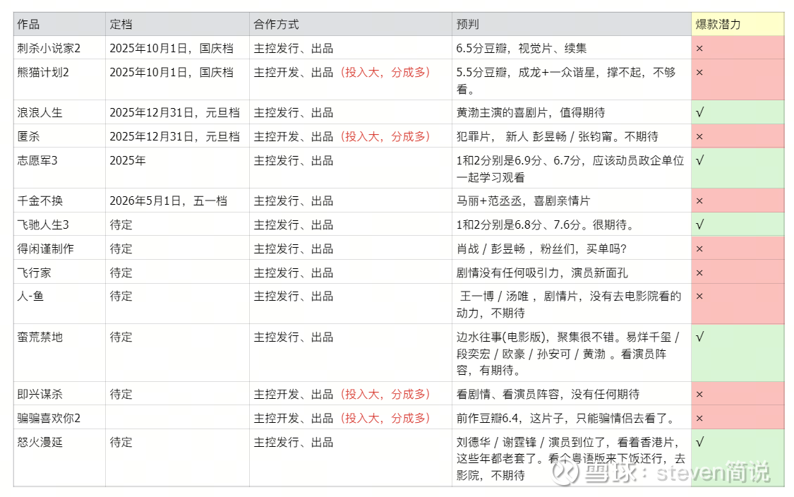 猫眼能参与主控开发的(投资大、分成多),看着都没有爆款潜力,甚至可能是垃圾。