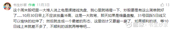 10月31日的回调我觉得太正常了,但不正常的是:论坛里全是看好的声音,并认为这是"揉搓线"洗盘……这种一致性,第一次让我感到意外。