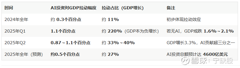 2025年第二季度,AI相关投资对GDP增长的贡献已超过个人消费支出,成为最大单一增长来源 。