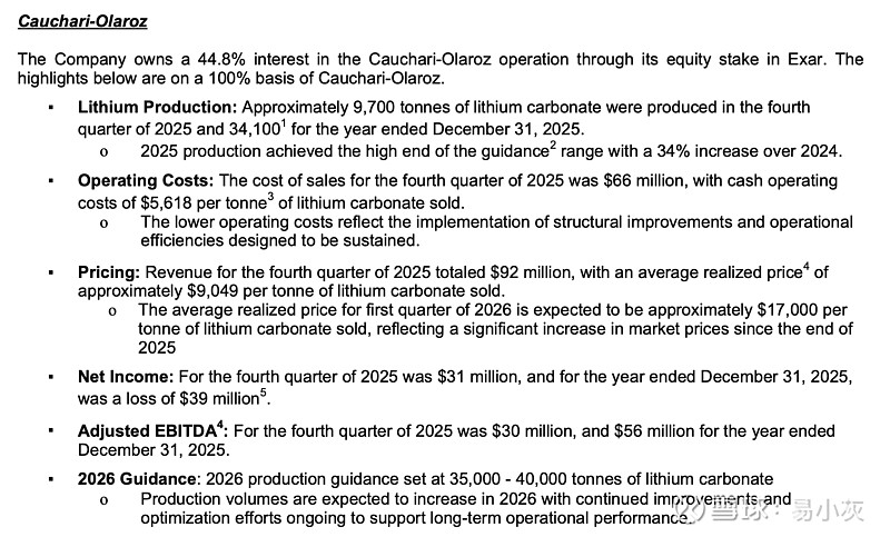 25Q4 C-O项目3100万美元利润,母公司层面基本打平,26Q1平均吨售价环比高近8000美元,毛估估26Q1母公司层面2300万美元利润,全年产量继续爬坡,均价大概率高于Q1,按现在的锂价毛估1.5亿美元利润