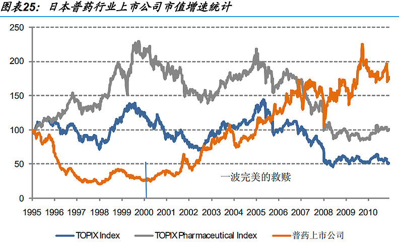 分享一个日本的普药行业研究,老龄化背景下,非创新药的医药医疗(普药)一定是先被降价出现巨大的负beta,随后才能体现老龄化增速的红利: