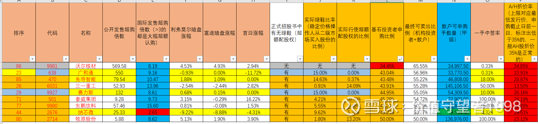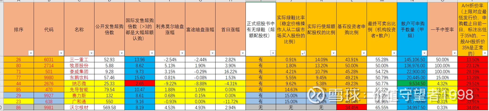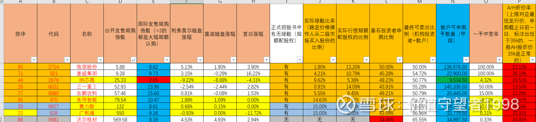 因此,你要是奔着AH股折价率 < 35%且有绿鞋就敢申购的话,那你就得承受这个代价了。