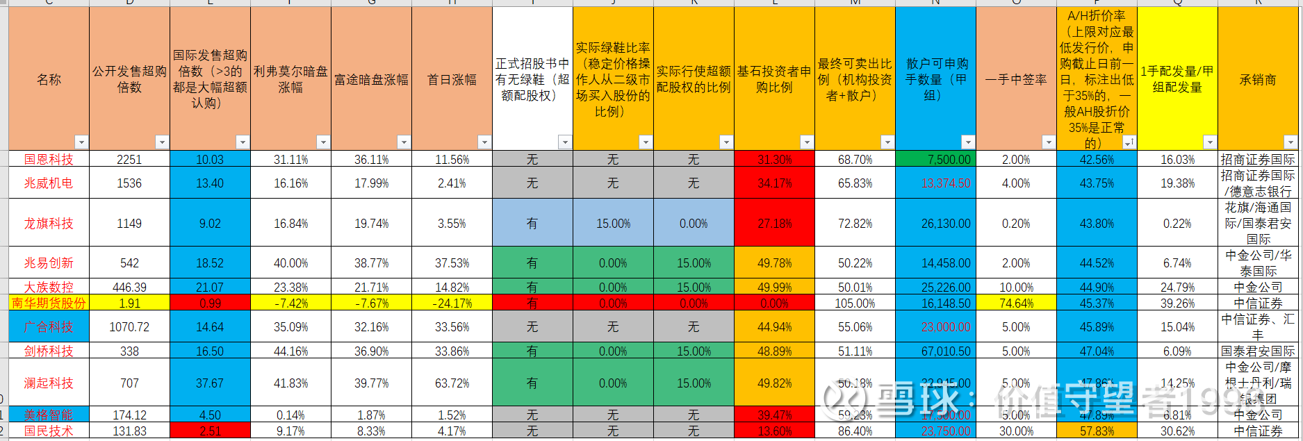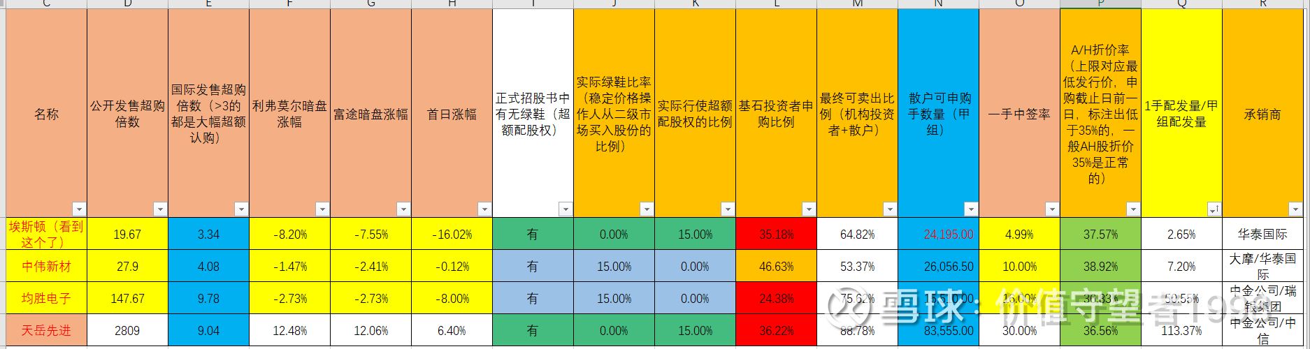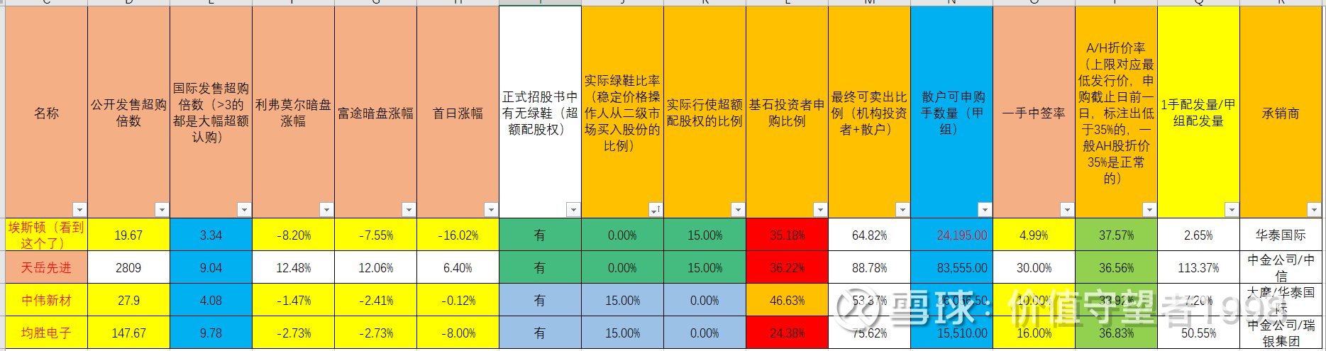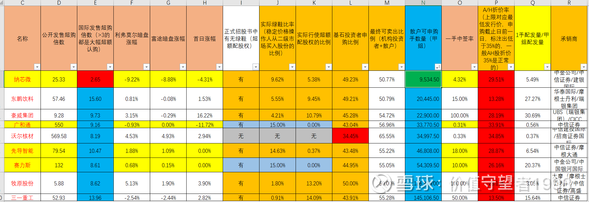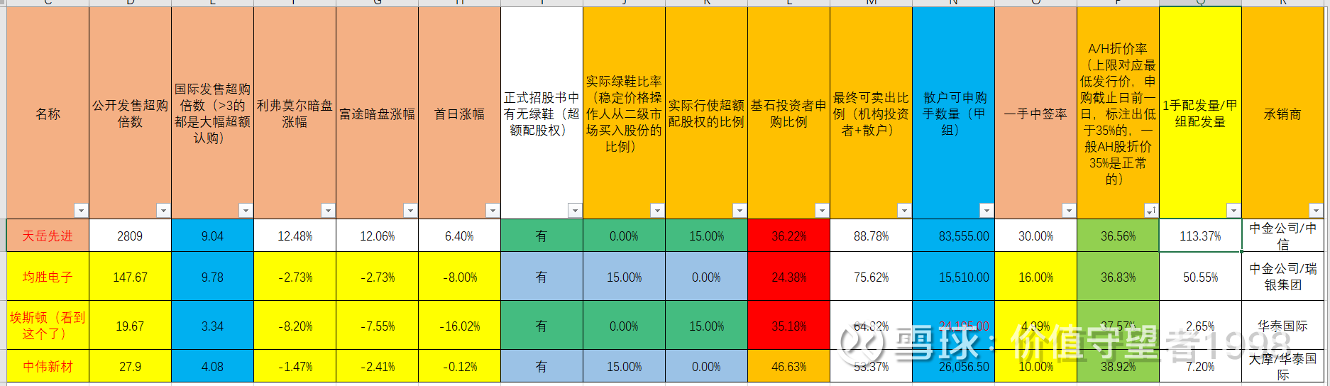 具体的可以看看我给的统计数据(A股股价统一记录申购截止日前一日收盘价,人民币兑换港币的汇率也是统一使用申购截止日前一日收盘汇率,毕竟申购截止日当天的上午10点就截止申购了,咱们选择截止日前一日进行统计的话方便咱们申购)。