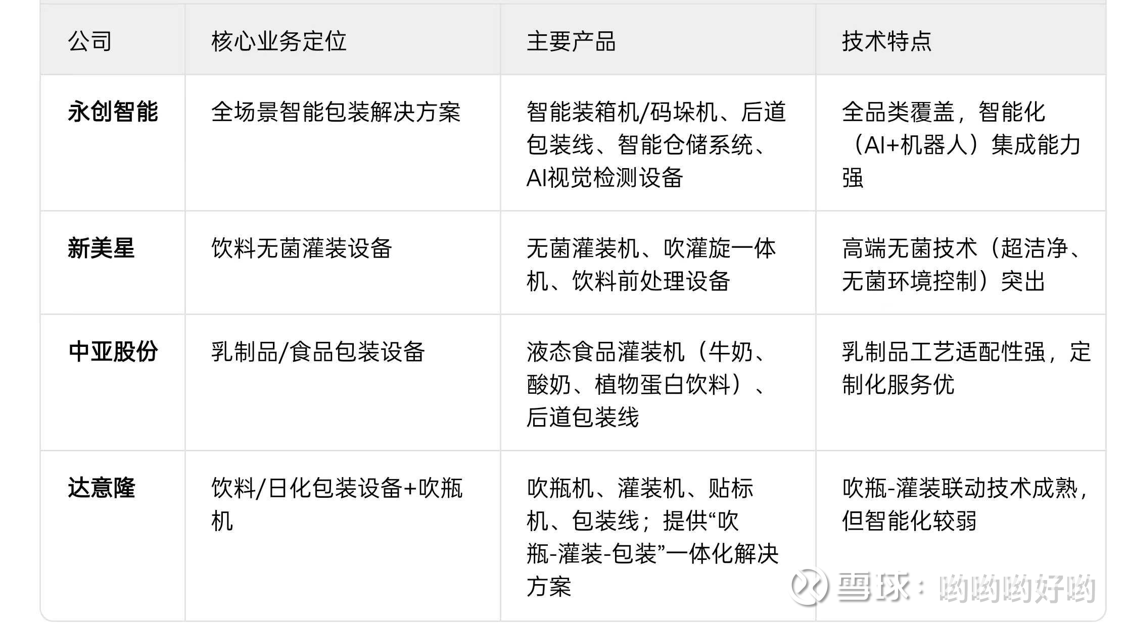 这四家在包装设备领域还是比较具有代表性的上市公司。