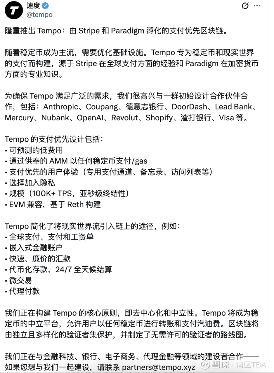 Shopify:作为设计伙伴,代表了全球数百万商家的需求,确保了Tempo在电商、零售等核心支付场景的实用性。